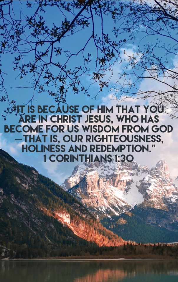 1 Corinthians 1:30 Share this: Click to share on Facebook (Opens in new window) Facebook Click to share on X (Opens in new window) X Like Loading... Related