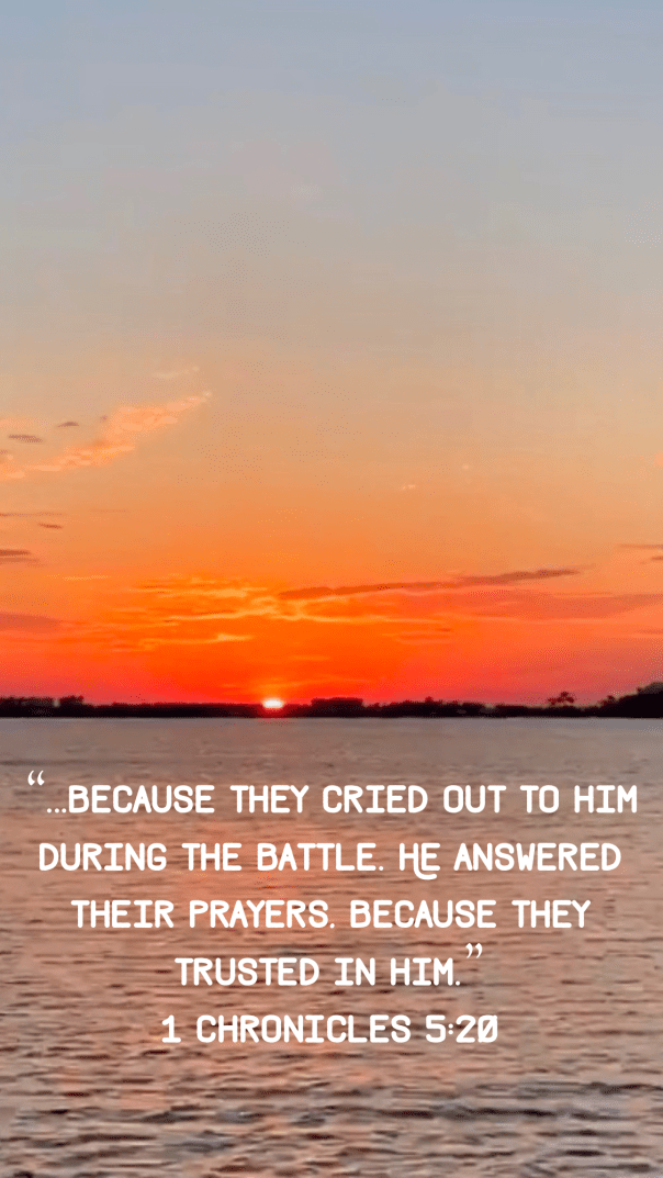 1 Chronicles 5:20 Share this: Click to share on Facebook (Opens in new window) Facebook Click to share on X (Opens in new window) X Like Loading... Related