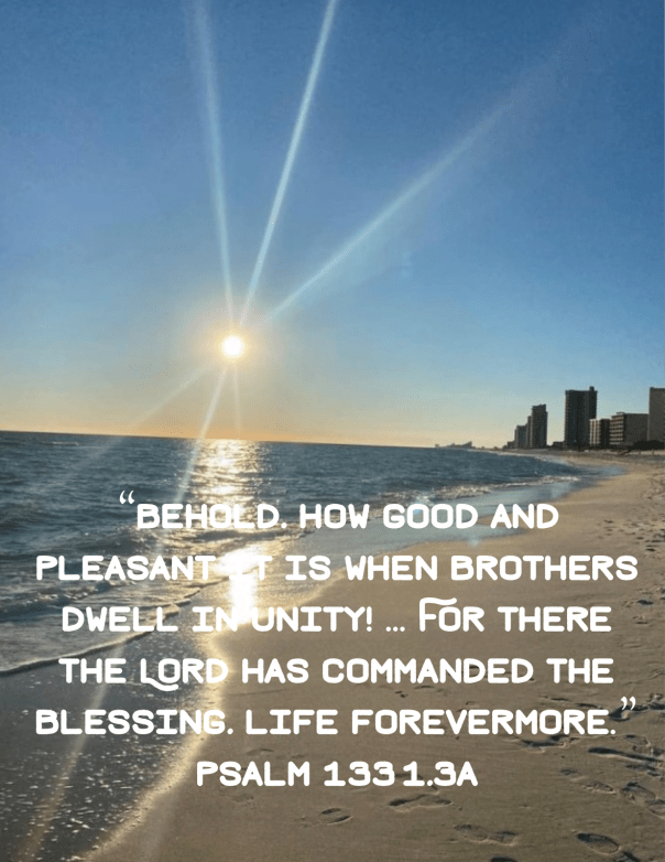 Psalm 133:1-3a Share this: Share on Facebook (Opens in new window) Facebook Share on X (Opens in new window) X Like Loading... Related
