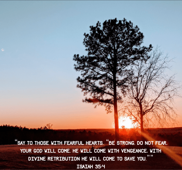 Isaiah 35:4 Share this: Share on Facebook (Opens in new window) Facebook Share on X (Opens in new window) X Like Loading... Related