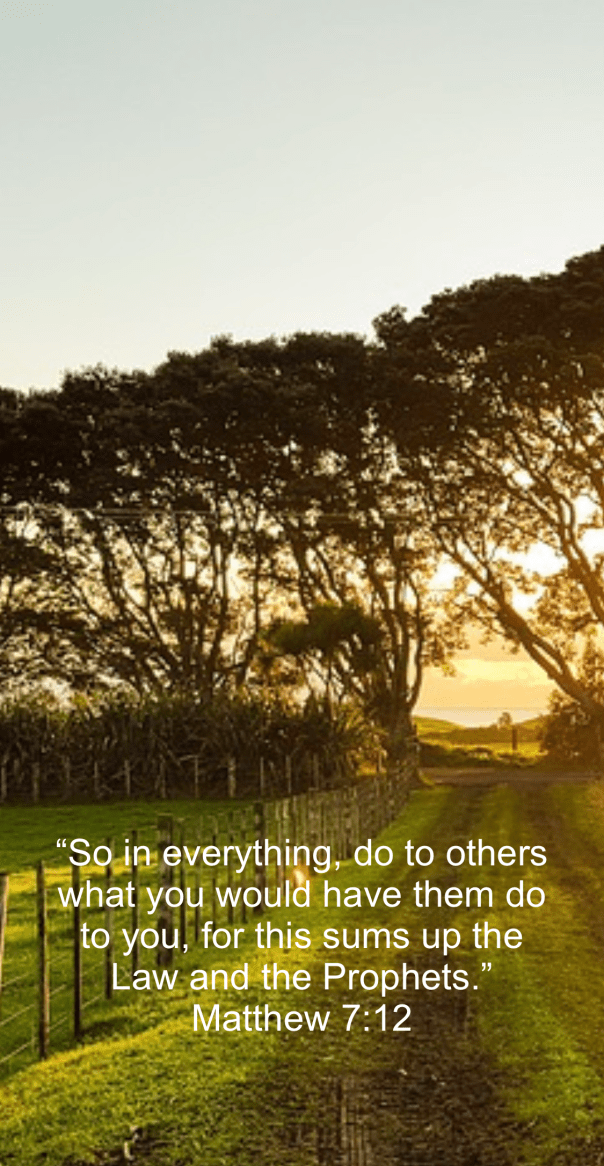 Matthew 7:12 Share this: Share on Facebook (Opens in new window) Facebook Share on X (Opens in new window) X Like Loading... Related