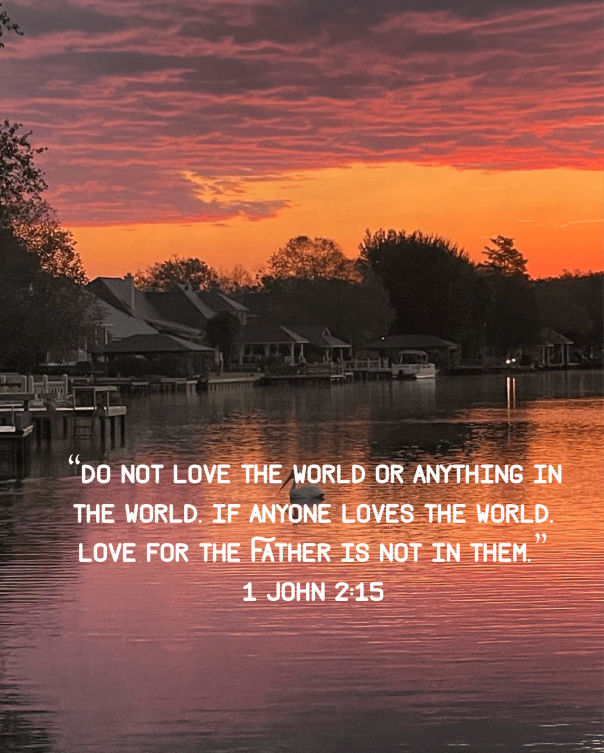 1 John 2:15 Share this: Click to share on Facebook (Opens in new window) Facebook Click to share on X (Opens in new window) X Like Loading... Related