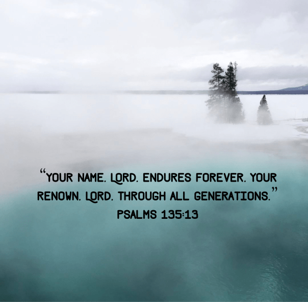 Psalm 135:13 Share this: Share on Facebook (Opens in new window) Facebook Share on X (Opens in new window) X Like Loading... Related