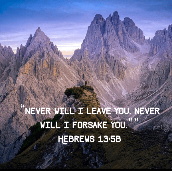 Hebrews 13:5 Share this: Click to share on Facebook (Opens in new window) Facebook Click to share on X (Opens in new window) X Like Loading... Related