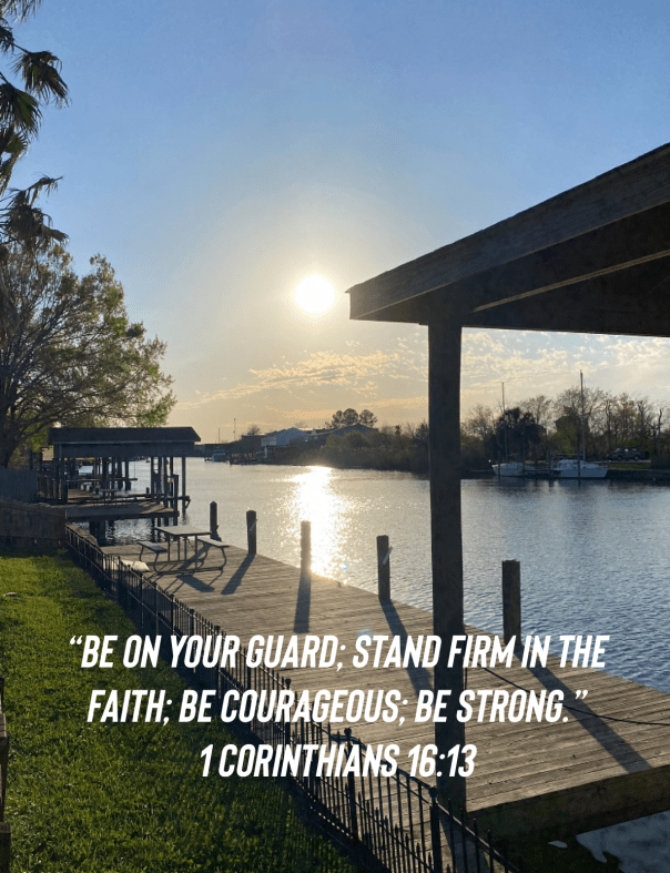 1 Corinthians 16:13 Share this: Share on Facebook (Opens in new window) Facebook Share on X (Opens in new window) X Like Loading... Related