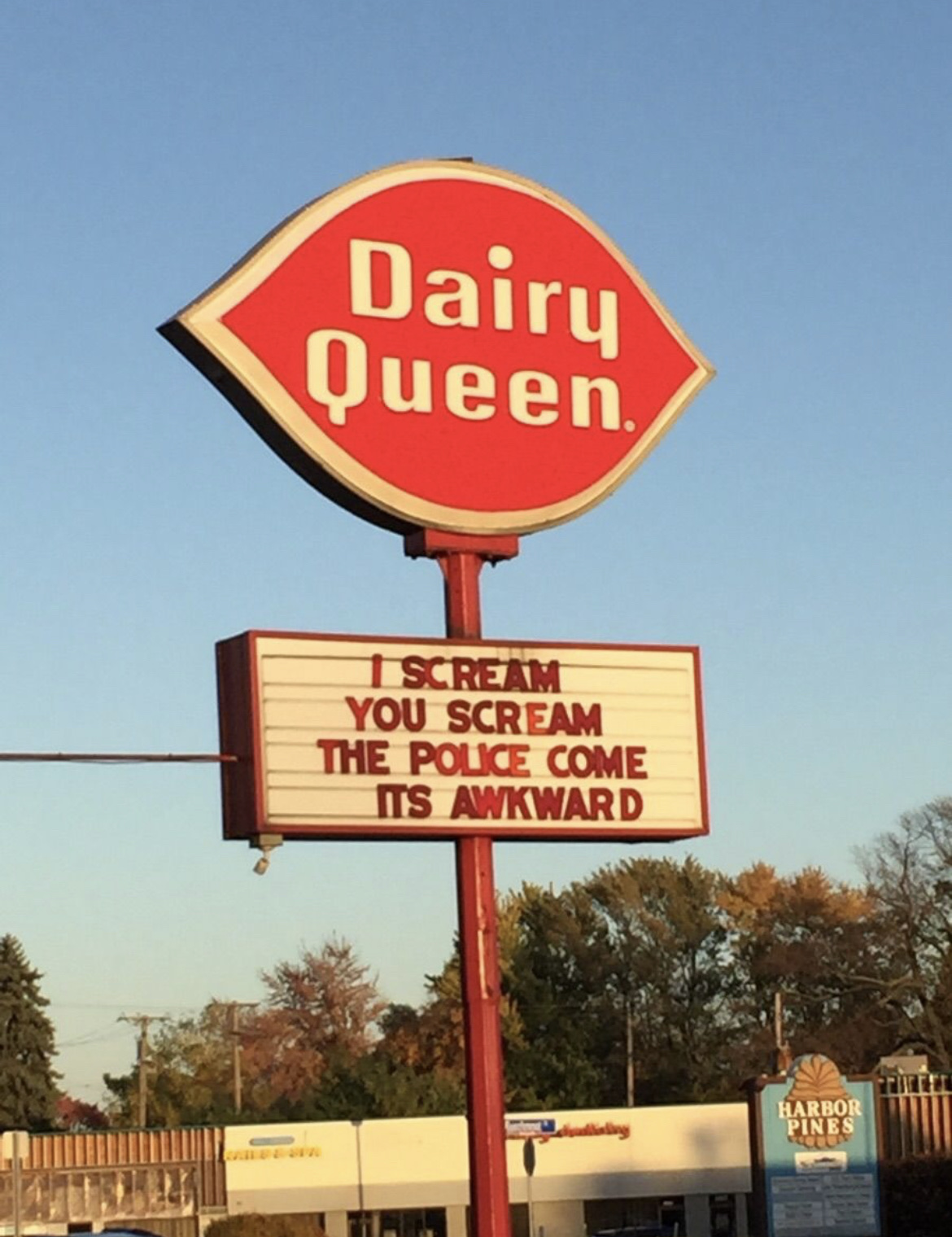 Outside an ice cream shop: “Scream until daddy stops the car.”