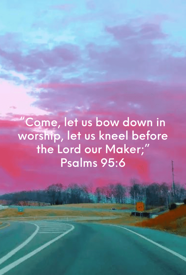 Psalm 95:6 Share this: Share on Facebook (Opens in new window) Facebook Share on X (Opens in new window) X Like Loading... Related