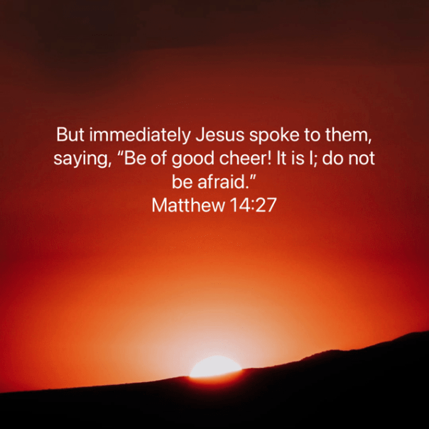 Matthew 14:27 Share this: Click to share on Facebook (Opens in new window) Facebook Click to share on X (Opens in new window) X Like Loading... Related